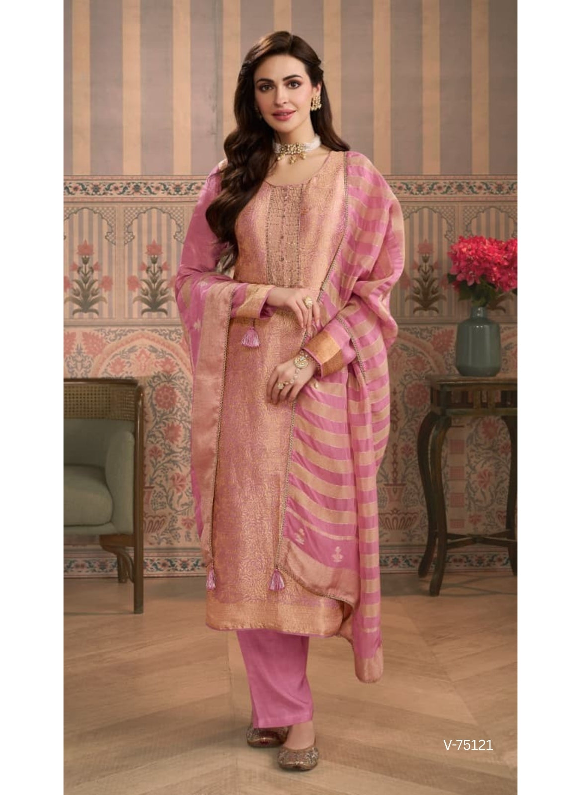 Step into festive elegance with Shardha, a premium suit set crafted from luxurious fabrics. The top is made from VIS Simmer jacquard, enhanced with delicate hand work for a refined look. It pairs with a smooth Santoon bottom, offering comfort and graceful drape. Completing the ensemble is an organza jacquard dupatta, beautifully finished with latkans and a four-sided lace border — perfect for weddings, festive occasions, and special gatherings.